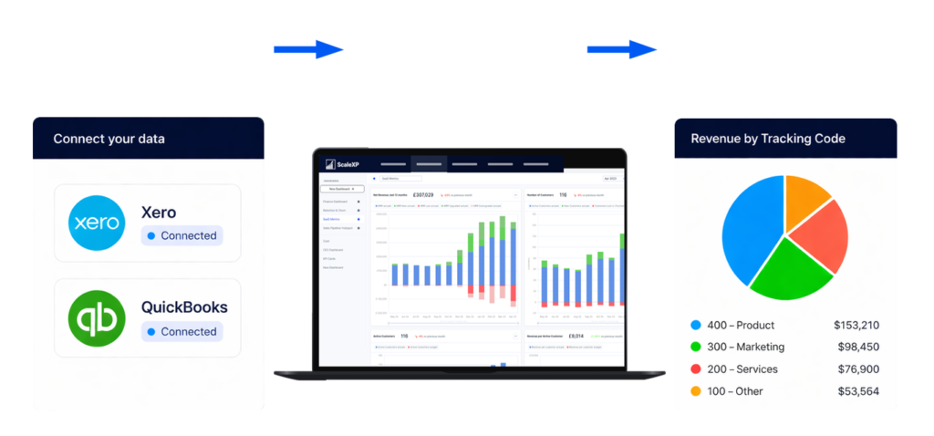 Yes. ScaleXP supports reporting by Xero Tracking Codes and QuickBooks Classes. This helps finance teams analyse performance by department, region, business unit, or other reporting dimensions that already exist in the accounting structure.